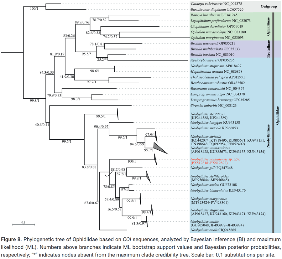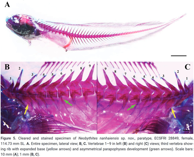新民晚报记者今天(3月7日)从上海海洋大学获悉,该校2022级博士研究生、中国水产科学研究院东海水产研究所助理研究员陈佳杰,发现一种鼬鳚科鱼类新物种,命名为南海新鼬鳚(Neobythites nanhaiensis)。近期,相关研究在国际动物分类学期刊《Zookeys》上正式发表。