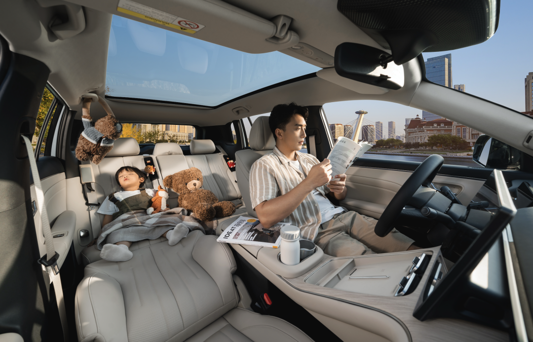 空间表现方面,基于4685mm车长与2775mm的轴距,埃安i60后排腿部空间达1037mm,垂直空间1020mm,即使身高1.8米的乘客也能舒展自如。